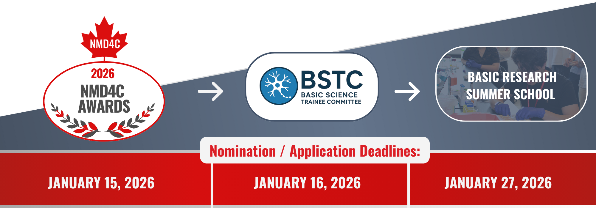 Application Deadline: January 27, 2026 | We are excited to announce that applications are now open for our third Basic Research Summer School for neuromuscular research trainees! Led by  Dr. Mireille Khacho, the 2026 NMD4C Basic Research Summer School will be held from June 8th to 10th at the University of Ottawa.